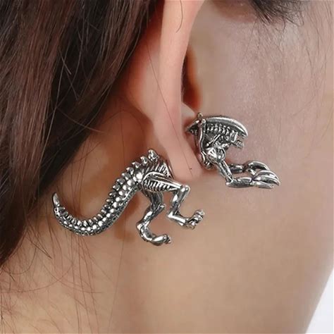 New Simple Minority Trend Dinosaur Earrings Women's Retro Cool Alien Men's Earrings Animal Piercing