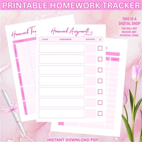 Shop homework log printable